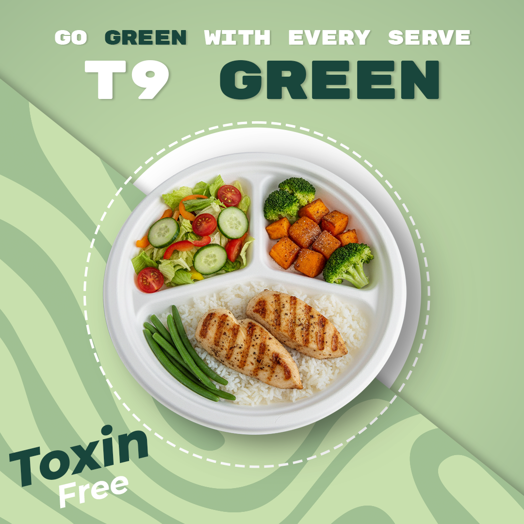 2. Why Choose T9 Green? At T9 Green, we care about both people and the planet. That’s why our 10 inch 3 CP plates are crafted with love from 100% natural bagasse, making them eco-friendly, biodegradable, chemical-free, sturdy, and non-flimsy. These meal tray are oil and water resistant and strong enough to hold heavy meals with ease.