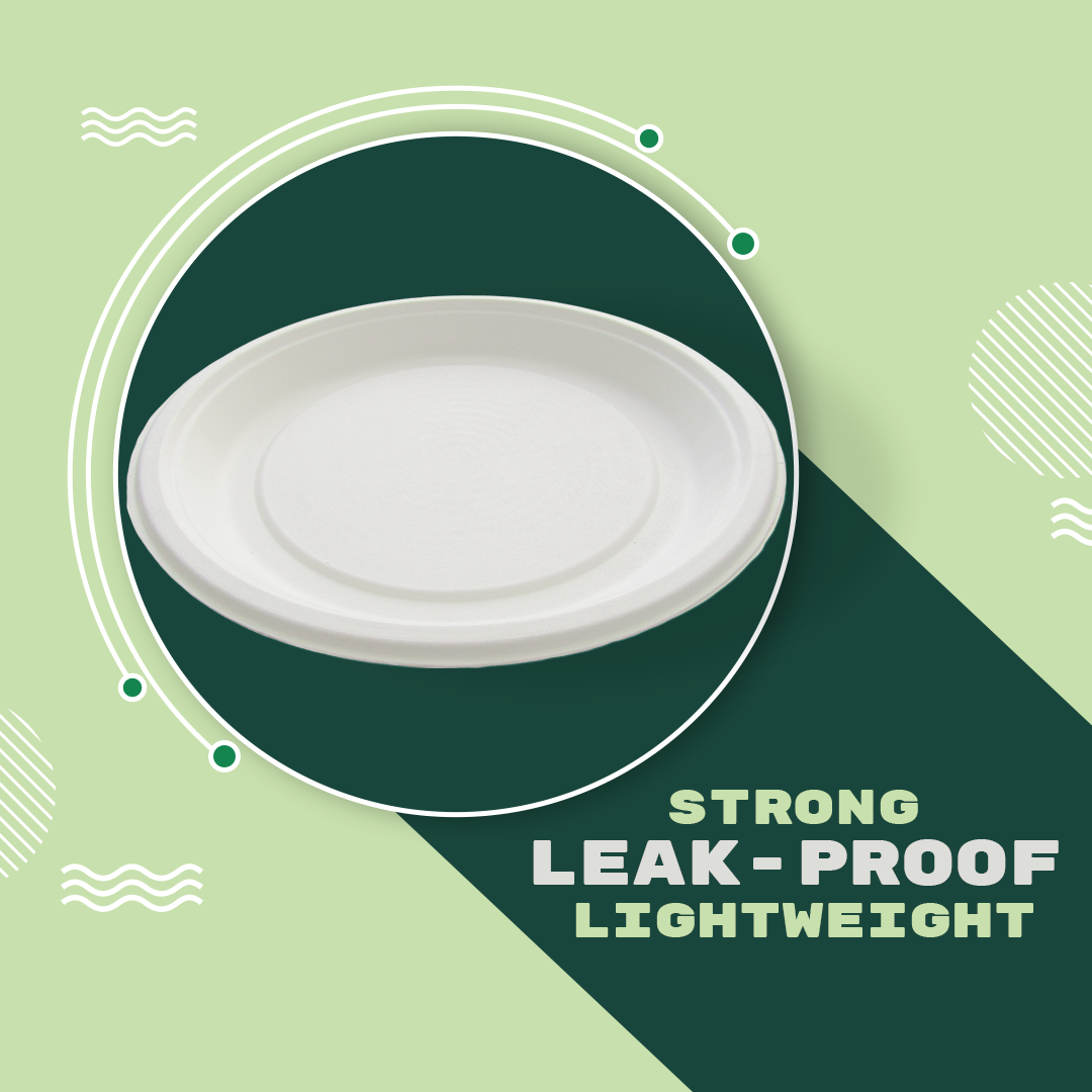 2. Why Choose T9 Green? At T9 Green, we care about both people and the planet. That’s why our 12" Plain Plate are crafted with love from 100% natural bagasse, making them eco-friendly, biodegradable, chemical-free, sturdy, and non-flimsy. These plates are oil and water resistant and strong enough to hold heavy meals with ease.