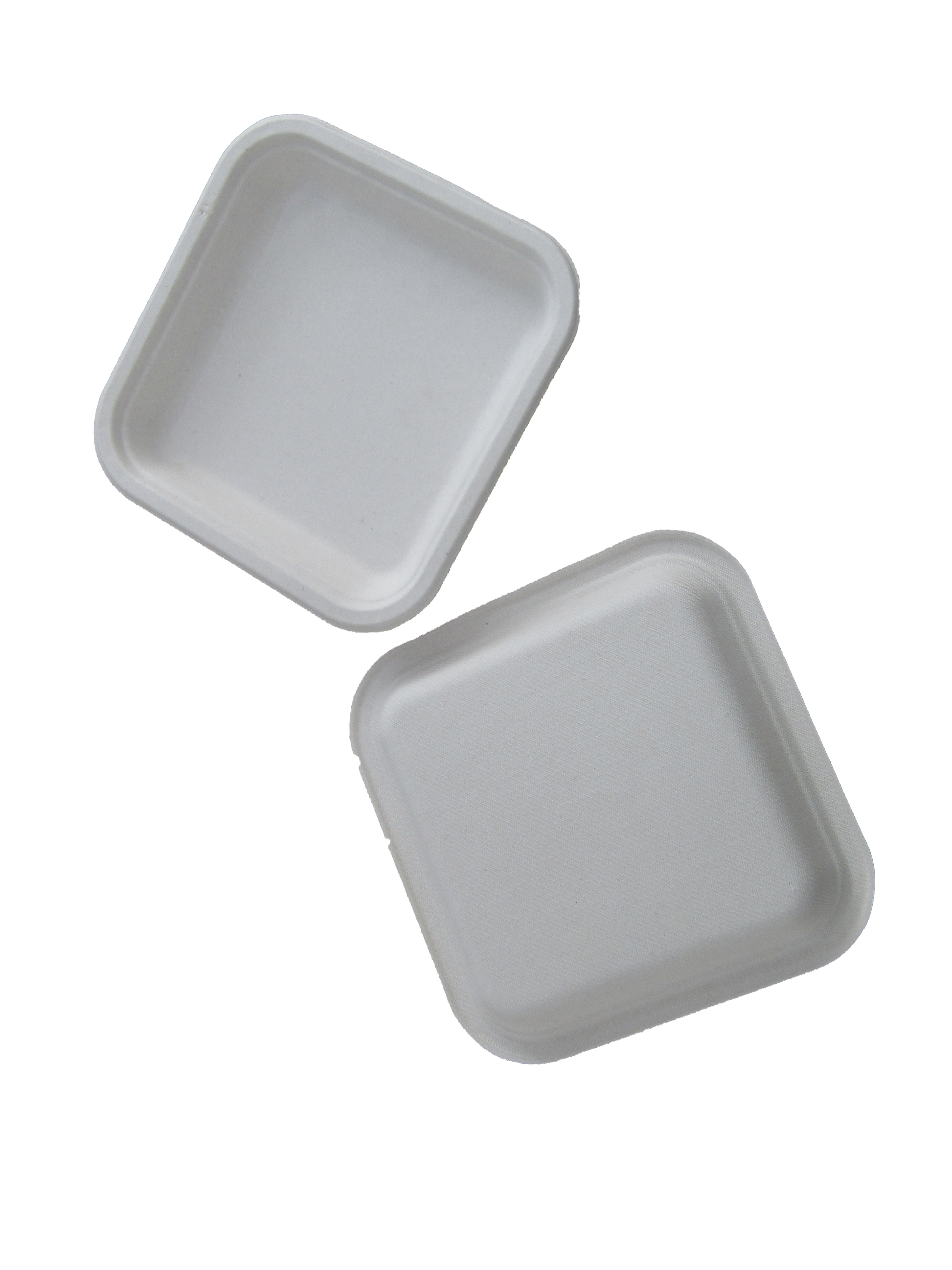 1. Specifications: Material:Bagasse (Sugarcane Pulp), Size: 120ML", Weight: 3.5 grams per plate, Color: Pearl White, Shape: Square, Pack Size: 25 Pieces
