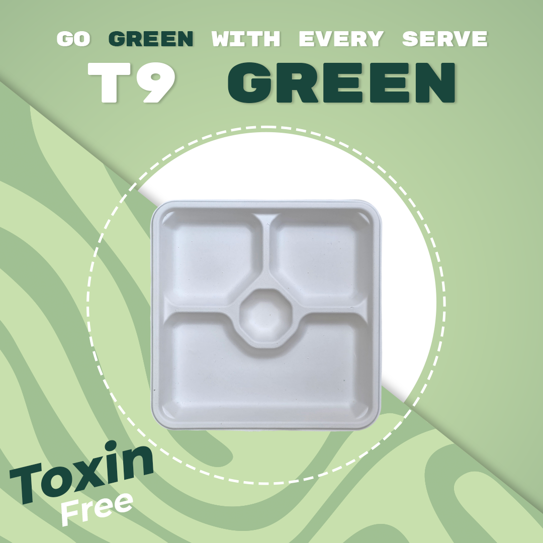 2. Why Choose T9 Green? At T9 Green, we care about both people and the planet. That’s why our 3 CP plates are crafted with love from 100% natural bagasse, making them eco-friendly, biodegradable, chemical-free, sturdy, and non-flimsy. These meal tray are oil and water resistant and strong enough to hold heavy meals with ease.